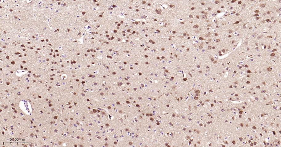 Paraformaldehyde-fixed, paraffin embedded Rat Cerebrum; Antigen retrieval by boiling in sodium citrate buffer (pH6.0) for 15 min; The section was incubated with PIN1 Monoclonal Antibody, Unconjugated (bsm-51230M) at 1:200 overnight at 4°C, followed by conjugation to the bs-40296G-HRP and DAB (C-0010) staining.