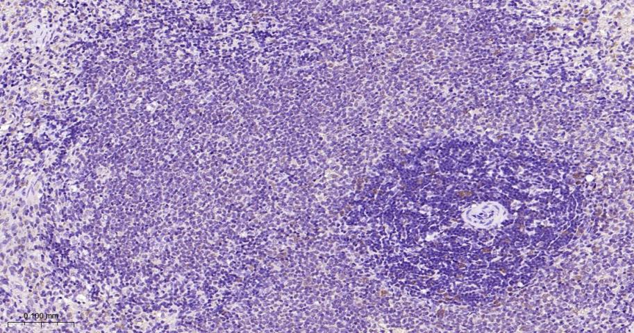Paraformaldehyde-fixed, paraffin embedded Rat Spleen; Antigen retrieval by boiling in sodium citrate buffer (pH6.0) for 15 min; The section was incubated with PIN1 Monoclonal Antibody, Unconjugated (bsm-51230M) at 1:200 overnight at 4°C, followed by conjugation to the bs-40296G-HRP and DAB (C-0010) staining.