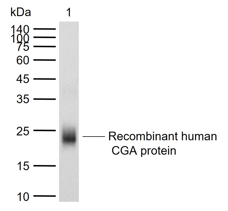 Lane 1: Recombinant human CGA protein, His (HEK293)( bs-43075P)