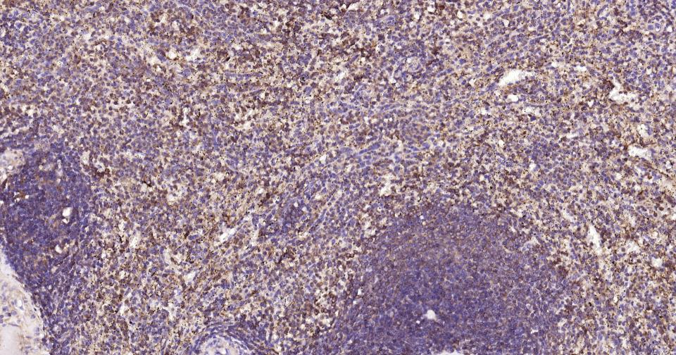 Paraformaldehyde-fixed, paraffin embedded Human Spleen; Antigen retrieval by boiling in sodium citrate buffer (pH6.0) for 15 min; Antibody incubation with CD206 Monoclonal Antibody, Unconjugated(bsm-60761R) at 1:1000 overnight at 4°C, followed by conjugation to the SP Kit (Rabbit, SP-0023)and DAB (C-0010) staining.