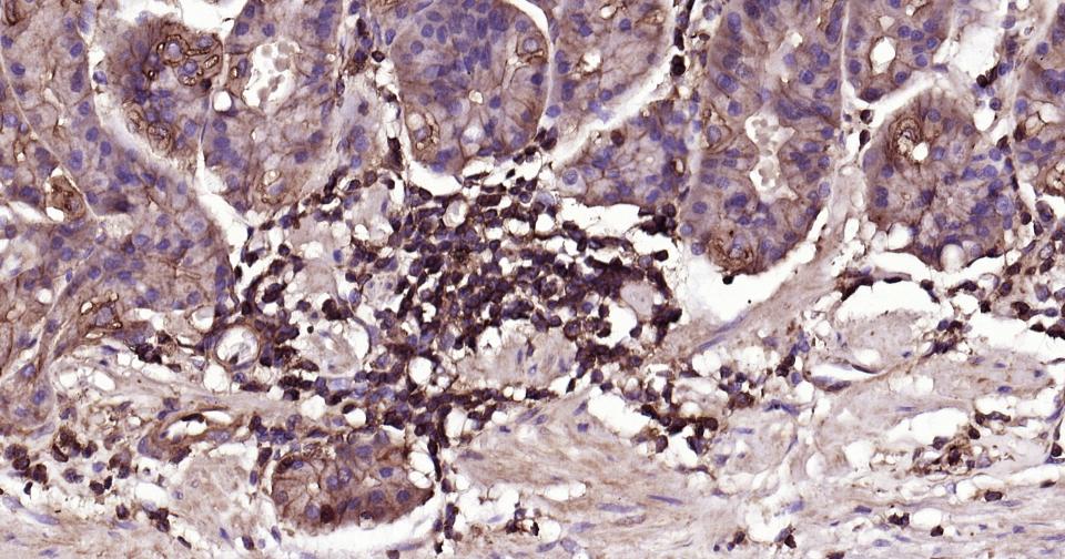 Paraformaldehyde-fixed, paraffin embedded Human Colon; Antigen retrieval by boiling in sodium citrate buffer (pH6.0) for 15 min; Antibody incubation with CD206 Monoclonal Antibody, Unconjugated(bsm-60761R) at 1:1000 overnight at 4°C, followed by conjugation to the SP Kit (Rabbit, SP-0023)and DAB (C-0010) staining.