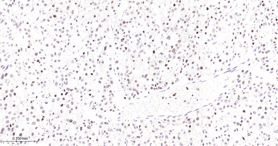Paraformaldehyde-fixed, paraffin embedded Human Liver Cancer; Antigen retrieval by boiling in sodium citrate buffer (pH6.0) for 15 min; Antibody incubation with PCNA Monoclonal Antibody, Unconjugated(bsm-33035R) at 1:200 overnight at 4°C, followed by conjugation to the bs-0295G-HRP and DAB (C-0010) staining.