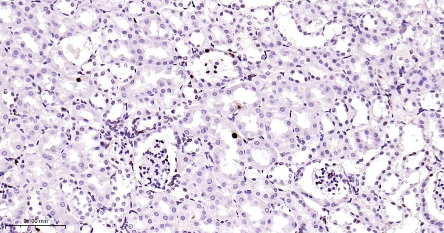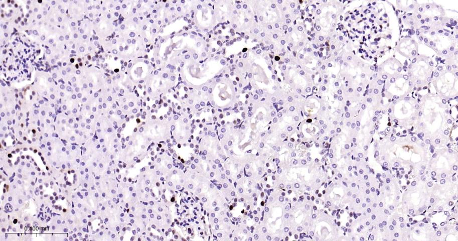 Paraformaldehyde-fixed, paraffin embedded Rat Kidney; Antigen retrieval by boiling in sodium citrate buffer (pH6.0) for 15 min; Antibody incubation with PCNA Monoclonal Antibody, Unconjugated(bsm-33035R) at 1:200 overnight at 4°C, followed by conjugation to the bs-0295G-HRP and DAB (C-0010) staining.