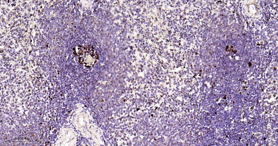 Paraformaldehyde-fixed, paraffin embedded Human Spleen; Antigen retrieval by boiling in sodium citrate buffer (pH6.0) for 15 min; Antibody incubation with PCNA Monoclonal Antibody, Unconjugated(bsm-33035R) at 1:200 overnight at 4°C, followed by conjugation to the bs-0295G-HRP and DAB (C-0010) staining.