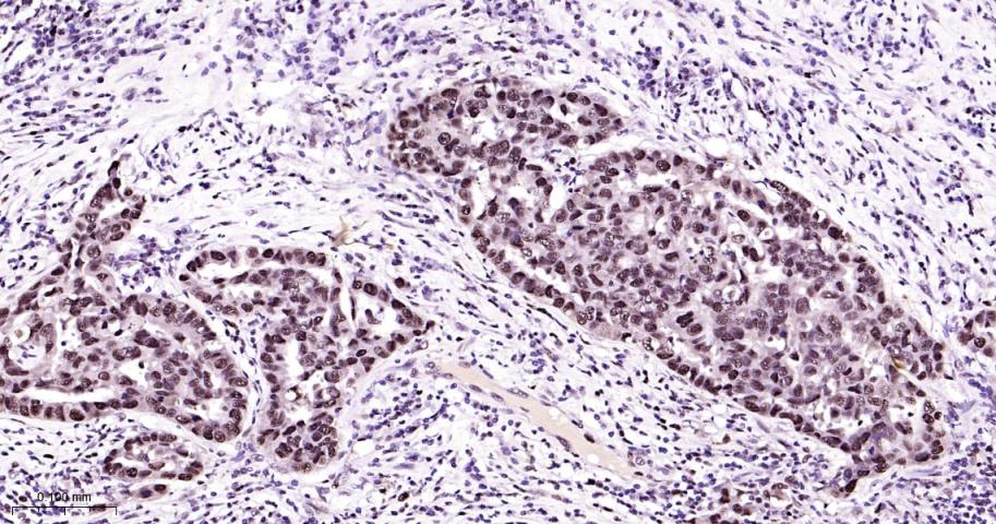Paraformaldehyde-fixed, paraffin embedded Human Breast Cancer; Antigen retrieval by boiling in sodium citrate buffer (pH6.0) for 15 min; Antibody incubation with PCNA Monoclonal Antibody, Unconjugated(bsm-33035R) at 1:200 overnight at 4°C, followed by conjugation to the bs-0295G-HRP and DAB (C-0010) staining.