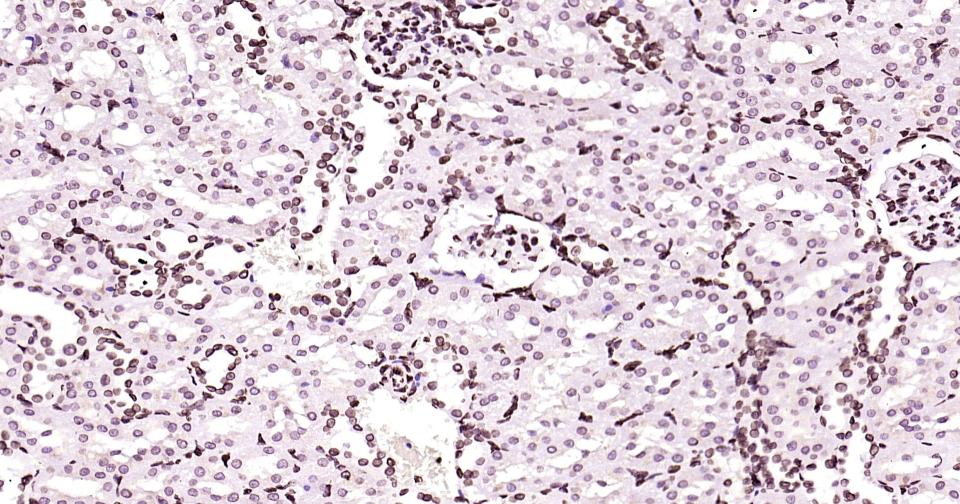Paraformaldehyde-fixed, paraffin embedded Rat Kidney; Antigen retrieval by boiling in sodium citrate buffer (pH6.0) for 15 min; Antibody incubation with lamin B1 Monoclonal Antibody, Unconjugated(bsm-52361R) at 1:200 overnight at 4°C, followed by conjugation to the bs-0295G-HRP and DAB (C-0010) staining.