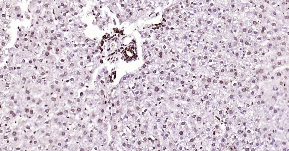 Paraformaldehyde-fixed, paraffin embedded Rat Liver; Antigen retrieval by boiling in sodium citrate buffer (pH6.0) for 15 min; Antibody incubation with lamin B1 Monoclonal Antibody, Unconjugated(bsm-52361R) at 1:200 overnight at 4°C, followed by conjugation to the bs-0295G-HRP and DAB (C-0010) staining.