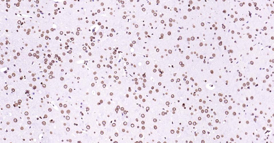 Paraformaldehyde-fixed, paraffin embedded Mouse Cerebrum; Antigen retrieval by boiling in sodium citrate buffer (pH6.0) for 15 min; Antibody incubation with lamin B1 Monoclonal Antibody, Unconjugated(bsm-52361R) at 1:200 overnight at 4°C, followed by conjugation to the bs-0295G-HRP and DAB (C-0010) staining.