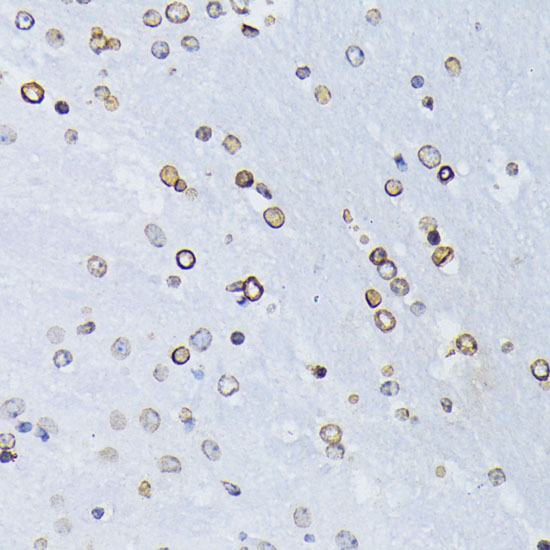 Paraformaldehyde-fixed, paraffin embedded (mouse brain); Antigen retrieval by boiling in sodium citrate buffer (pH6.0) for 15min; Block endogenous peroxidase by 3% hydrogen peroxide for 20 minutes; Blocking buffer (normal goat serum) at 37°C for 30min; Antibody incubation with (Lamin B1) Polyclonal Antibody, Unconjugated (bs-55118R) at 1:100 overnight at 4°C, followed by operating according to SP Kit(Rabbit) (sp-0023) instructionsand DAB staining.