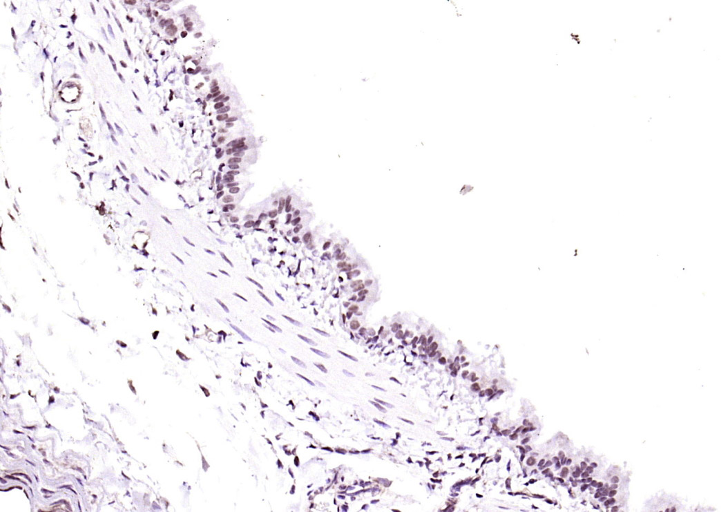 Paraformaldehyde-fixed, paraffin embedded (Mouse small intestine); Antigen retrieval by boiling in sodium citrate buffer (pH6.0) for 15min; Block endogenous peroxidase by 3% hydrogen peroxide for 20 minutes; Blocking buffer (normal goat serum) at 37°C for 30min; Antibody incubation with (Beclin 1) Polyclonal Antibody, Unconjugated (bs-55024R) at 1:200 overnight at 4°C, followed by operating according to SP Kit(Rabbit) (sp-0023) instructionsand DAB staining.