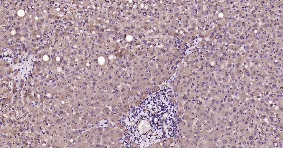 Paraformaldehyde-fixed, paraffin embedded Human Liver; Antigen retrieval by boiling in sodium citrate buffer (pH6.0) for 15 min; Antibody incubation with GAPDH Monoclonal Antibody, Unconjugated(bsm-52262R) at 1:250 overnight at 4°C, followed by conjugation to the SP Kit (Rabbit, SP-0023) and DAB (C-0010) staining.