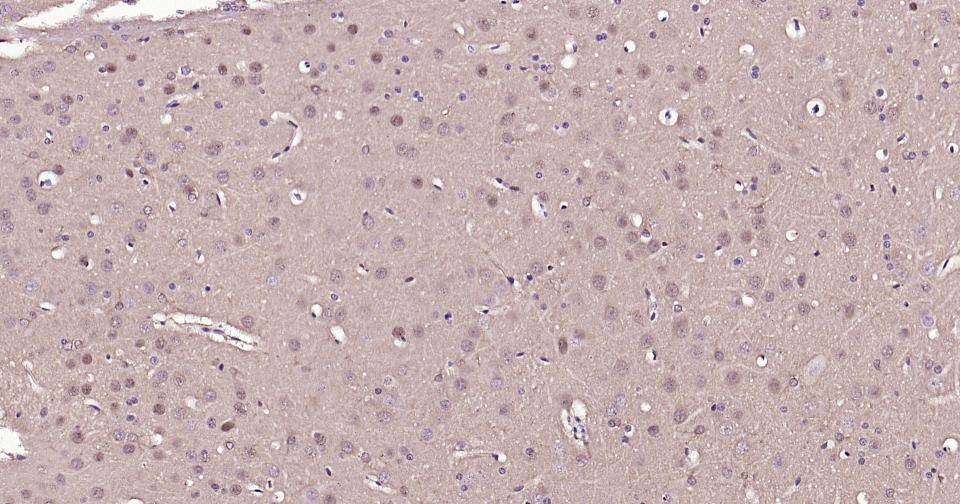 Paraformaldehyde-fixed, paraffin embedded Rat Cerebrum; Antigen retrieval by boiling in sodium citrate buffer (pH6.0) for 15 min; Antibody incubation with GAPDH Monoclonal Antibody, Unconjugated(bsm-52262R) at 1:250 overnight at 4°C, followed by conjugation to the SP Kit (Rabbit, SP-0023) and DAB (C-0010) staining.