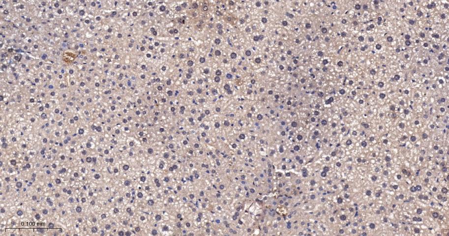 Paraformaldehyde-fixed, paraffin embedded Rat Liver; Antigen retrieval by boiling in sodium citrate buffer (pH6.0) for 15 min; The section was incubated with TSG101 Monoclonal Antibody, Unconjugated (bsm-52746R) at 1:200 overnight at 4°C, followed by conjugation to the bs-0295G-HRP and DAB (C-0010) staining.