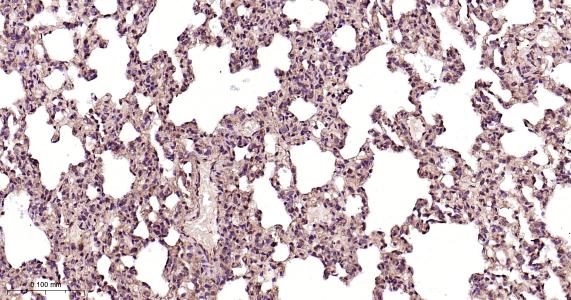 Paraformaldehyde-fixed, paraffin embedded Rat Lung; Antigen retrieval by boiling in sodium citrate buffer (pH6.0) for 15 min; Antibody incubation with EGFR Monoclonal Antibody, Unconjugated(bsm-52317R) at 1:200 overnight at 4°C, followed by conjugation to the bs-0295G-HRP and DAB (C-0010) staining.