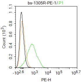 Primary Antibody (green line): Rabbit Anti-CCR7 antibody (bs-1305R-PE)