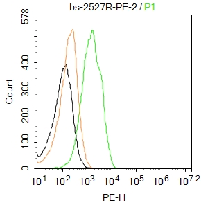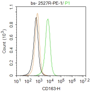 Primary Antibody (green line): Rabbit Anti-CD163 antibody (bs-2527R-PE)