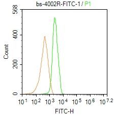 Primary Antibody (green line): Rabbit Anti-phospho-AMPK alpha-2(Thr172)/FITC Conjugated antibody (bs-4002R-FITC)