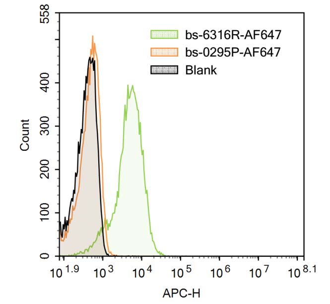 Primary Antibody (green line): Rabbit Anti-Prostaglandin E Receptor EP1 antibody (bs-6316R-BF647)