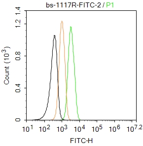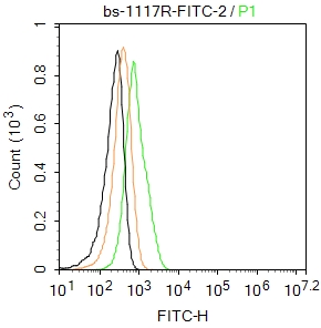 Primary Antibody (green line): Rabbit Anti-GPR49 antibody (bs-1117R-FITC)