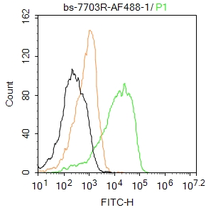 Primary Antibody (green line): Rabbit Anti-TSPYL5 antibody (bs-7703R-A488)
