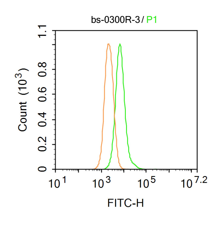 Primary Antibody (green line): Rabbit Anti-Mesothelin antibody (bs-0300R-FITC)