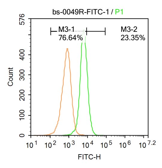 Primary Antibody (green line): Rabbit Anti-Caspase-9 antibody (bs-0049R)