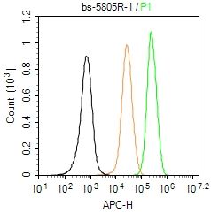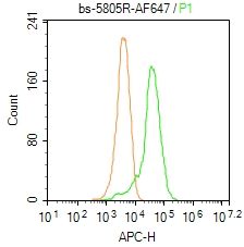 Primary Antibody (green line): Rabbit Anti-RIPK-1 /AF647 Conjugated antibody (bs-5805R-BF647)