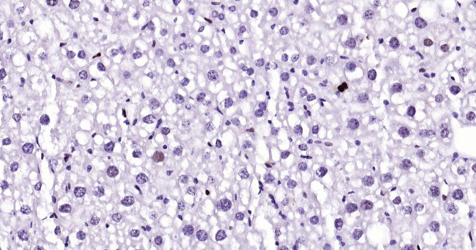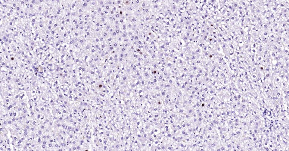 Paraformaldehyde-fixed, paraffin embedded Human Liver; Antigen retrieval by boiling in sodium citrate buffer (pH6.0) for 15 min; Antibody incubation with PCNA/HRP Monoclonal Antibody, Unconjugated(bsm-33035M-HRP) at 1:200 overnight at 4°C, followed by DAB (C-0010) staining.