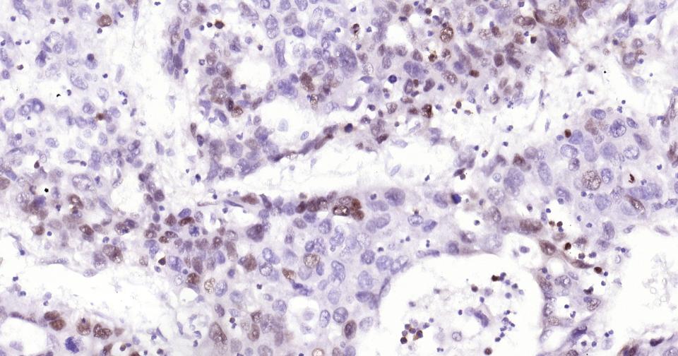 Paraformaldehyde-fixed, paraffin embedded Human Testicles; Antigen retrieval by boiling in sodium citrate buffer (pH6.0) for 15 min; Antibody incubation with PCNA/HRP Monoclonal Antibody, Unconjugated(bsm-33035M-HRP) at 1:200 overnight at 4°C, followed by DAB (C-0010) staining.