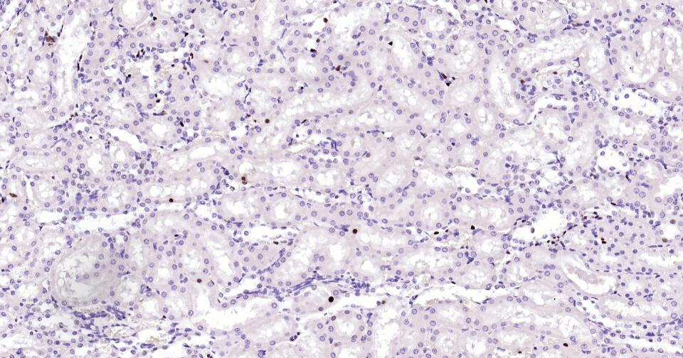 Paraformaldehyde-fixed, paraffin embedded Rat Kidney; Antigen retrieval by boiling in sodium citrate buffer (pH6.0) for 15 min; Antibody incubation with PCNA/HRP Monoclonal Antibody, Unconjugated(bsm-33035M-HRP) at 1:200 overnight at 4°C, followed by DAB (C-0010) staining.